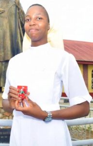 As an altar girl under the care of the EHJ sisters in my parish, I got the desire to be a reverend sister through one of them who was my friend and due to their neatness. I later had the opportunity of attending a vigil in the convent. Behold at that vigil, I was surprised seeing sisters playing different musical Instruments and I was marveled. It was strange to me the way they sang and played, there, I thought I was already in heaven. Then I got my call and had another opportunity to work with them, with this, I expressed my vocation and they guided me in answering my call.