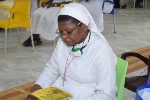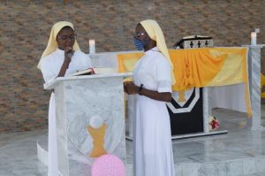 The ceremony was blessed with the presence of the dean of Epe Deanery, Fr. Gabriel Amolegbe of the Archdiocese of Lagos, who was the Chief Celebrant at the Holy Sacrifice of the Mass, Fr. Marcus Famosanya the Parish Priest of Immaculate Conception Catholic Church Ibonwon-Epe. Also present were, the Chaplain, Registrar, Vice Chancellor of St. Augustine University Ilara, other Priests of the Archdiocese of Lagos, the Superior General of the Sisters of the Eucharistic Heart of Jesus, Rev. Sr. M. Agatha Osarenkhoe, EHJ, some members of the Institute, friends and well-wishers.